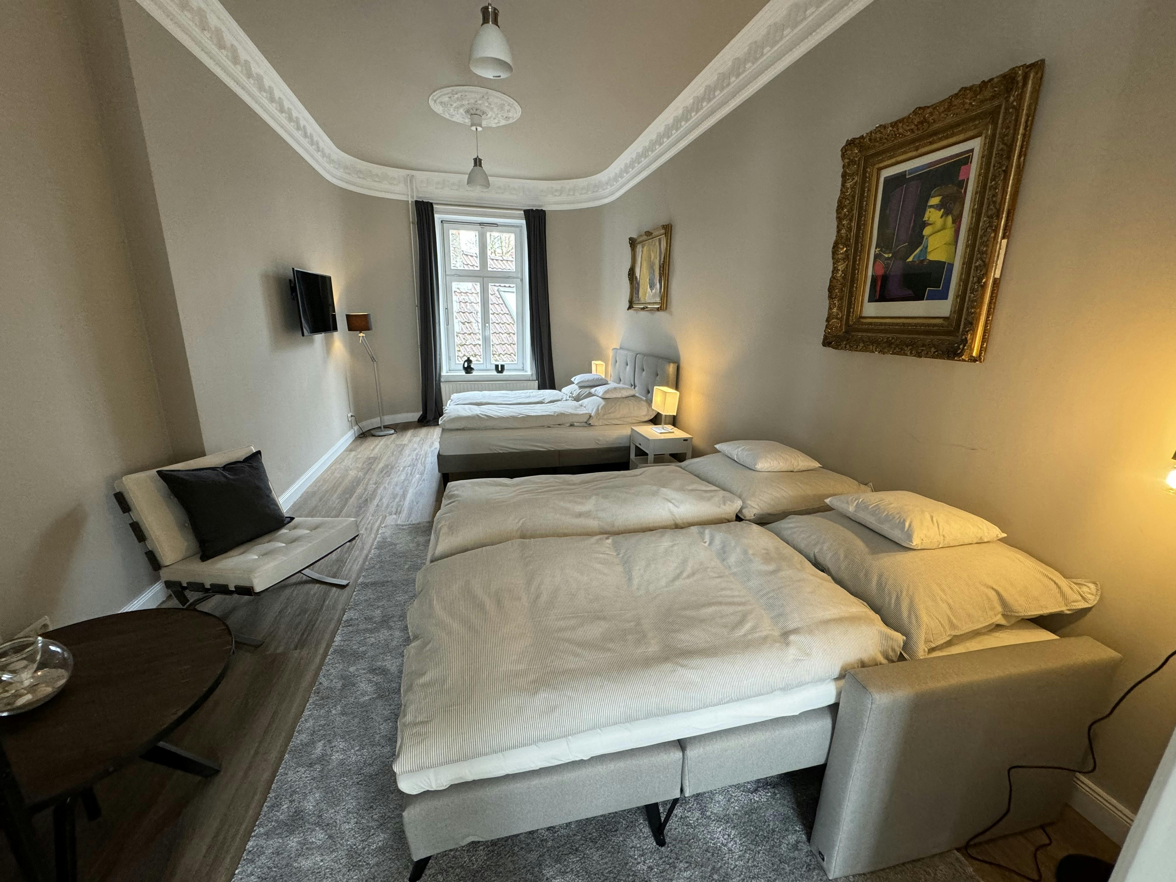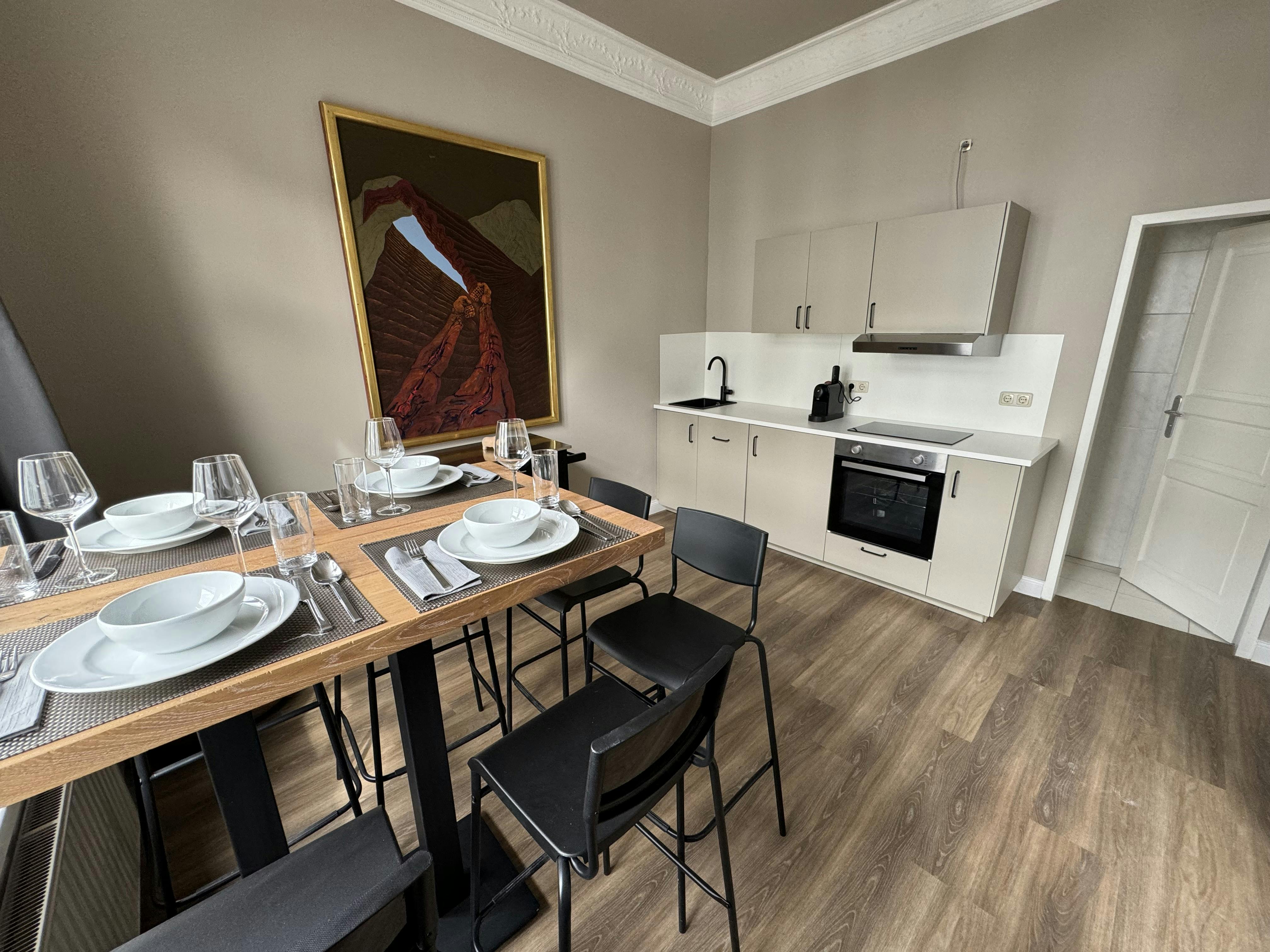 Dieses großzügige Apartment vereint modernes Design mit einer einladenden Atmosphäre und bietet auf 65 m² ausreichend Platz für bis zu sechs Gäste. Die geschmackvolle Einrichtung, kombiniert mit kreativer Kunst, verleiht dem Interieur eine besondere Note und schafft einen Ort, an dem Sie sich von Anfang an wohlfühlen werden. Das Apartment überzeugt mit durchdachten Details und einem Hauch von Luxus. Ein gemütliches Schlafzimmer mit Doppelbett sowie zusätzliche Schlafmöglichkeiten auf dem komfortablen Schlafsofa sorgen für entspannte Nächte. Die moderne Küche bietet alles, was Sie für eine unkomplizierte Selbstversorgung benötigen, während das private Badezimmer mit einer erfrischenden Dusche und hochwertigen Annehmlichkeiten ausgestattet ist. In dieser Unterkunft stehen Komfort und Funktionalität im Vordergrund. Bettwäsche, Handtücher sowie praktische Extras wie eine Waschmaschine, ein Wäschetrockner und schnelles WLAN sind selbstverständlich vorhanden. Ein Aufzug im Gebäude erleichtert den Zugang, wobei das Apartment aufgrund seiner Beschaffenheit nicht für Senioren oder Personen mit eingeschränkter Mobilität geeignet ist. Dank der zentralen Lage im Stadtzentrum erreichen Sie Hamburgs Sehenswürdigkeiten, Restaurants und Einkaufsmöglichkeiten bequem zu Fuß. Ob für einen kurzen Städtetrip oder einen längeren Aufenthalt – das Art Apartments 3 bietet den idealen Ausgangspunkt für unvergessliche Tage in Hamburg. Wir freuen uns darauf, Sie bald willkommen zu heißen und Ihnen ein unvergessliches Erlebnis zu bieten!