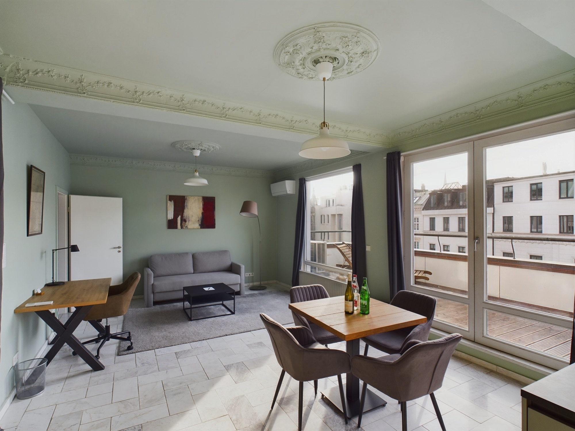 This elegant penthouse apartment combines modern design with urban flair and offers breathtaking views of the city. The generous windows make the interior bright and inviting, while the spacious and stylishly furnished living environment immediately creates a sense of luxury and well-being.