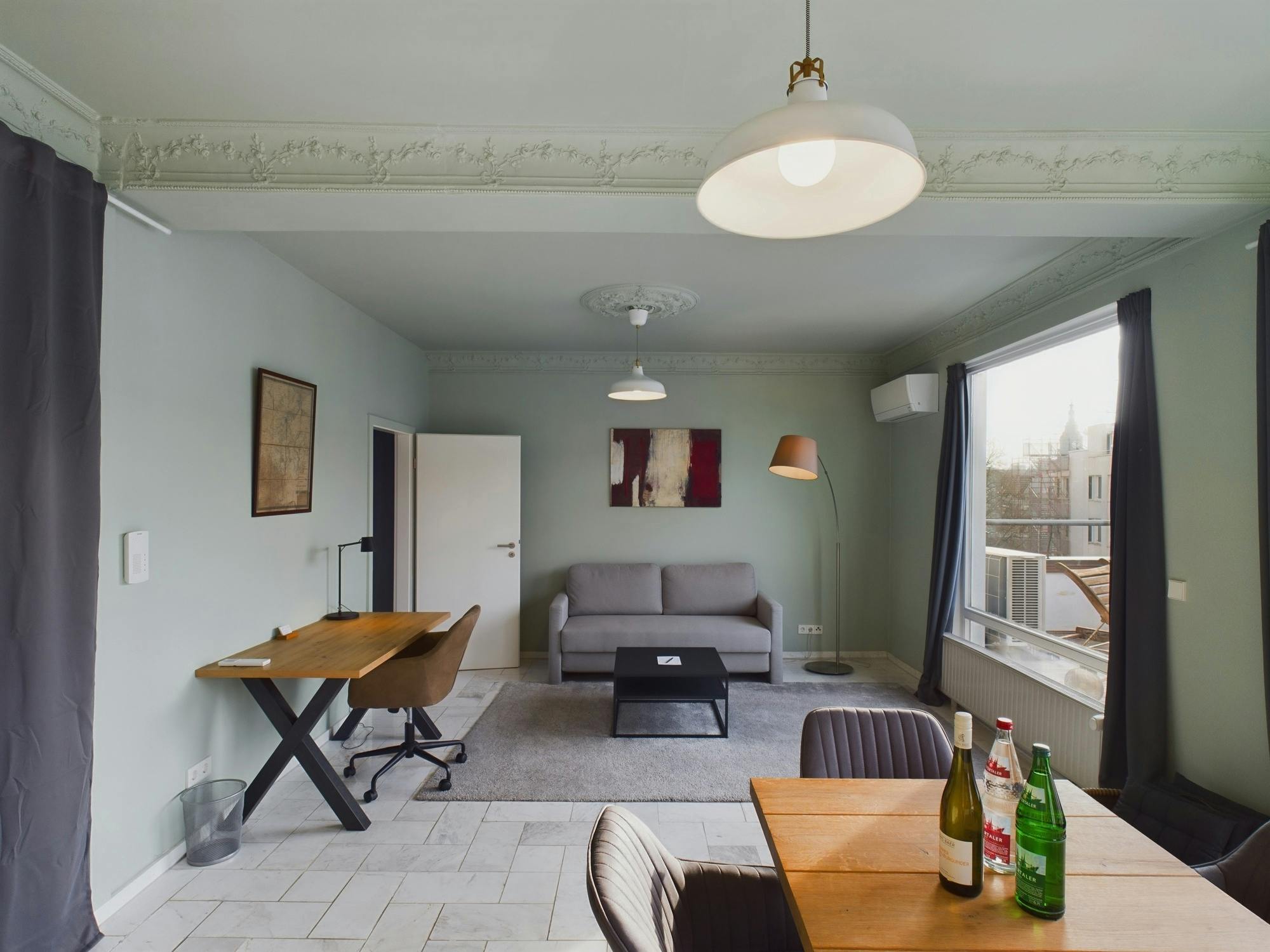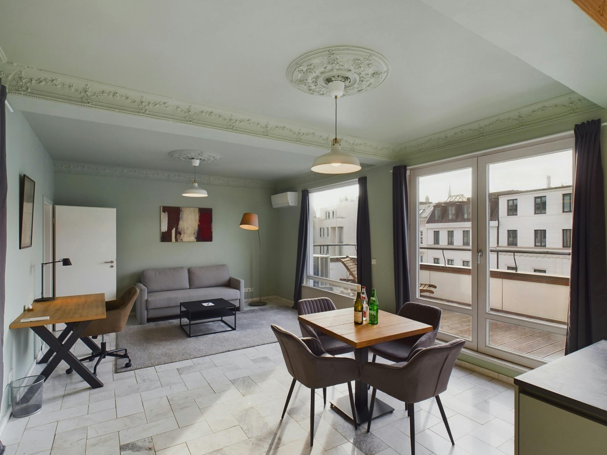 This elegant penthouse apartment combines modern design with urban flair and offers breathtaking views of the city. The generous windows make the interior bright and inviting, while the spacious and stylishly furnished living environment immediately creates a sense of luxury and well-being.